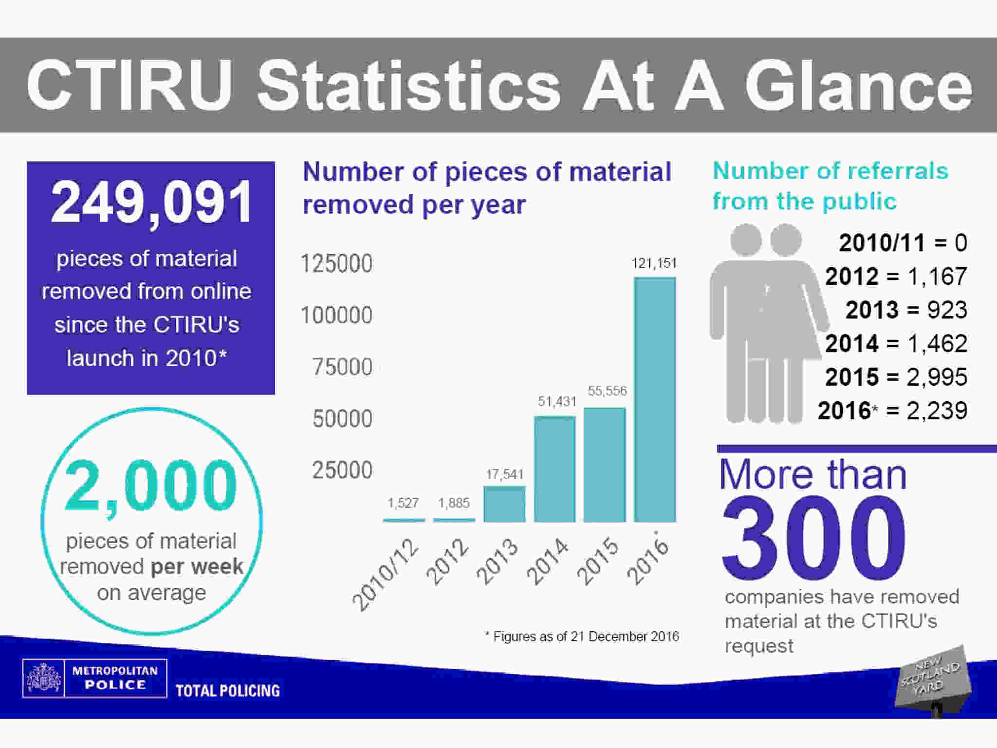 今天,Google 发布了最新的透明度报告。其中包含有关政府要求删除“恐怖主义或极端主义”内容的请求数量。数量很惊人,仅英国警方每年就会要求删除10万个内容。这些请求大多来自警方一个叫“互联网反恐小组”的部门 CTIRU,该部门的工作透明度非常之低。
