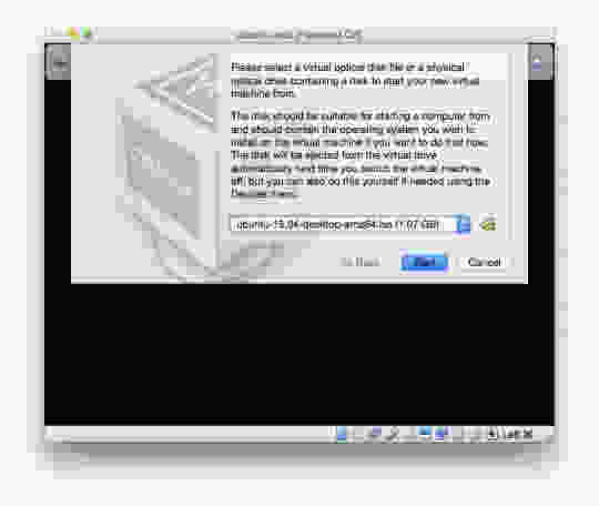 下一步是安装 Ubuntu。选择“ubuntu-test” VM 后,单击“开始”启动它。由于虚拟机是全新的,它会提示插入操作系统安装盘。当然实际上并不需要“磁盘”,相反可以找到并选择磁盘映像文件,然后单击“开始”。