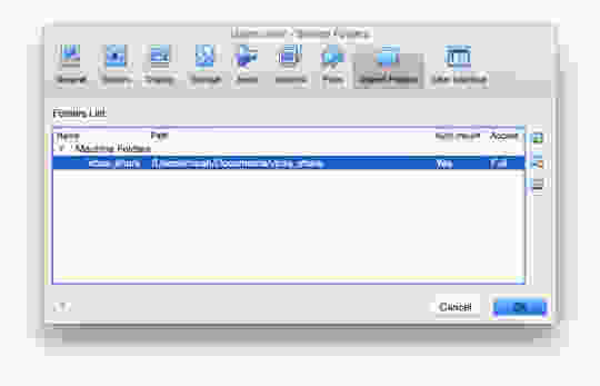 在 VirtualBox 窗口中选择您的 VM 并单击“设置”,然后转到“共享文件夹”选项卡。单击“+”图标以添加要与 VM 共享的文件夹。