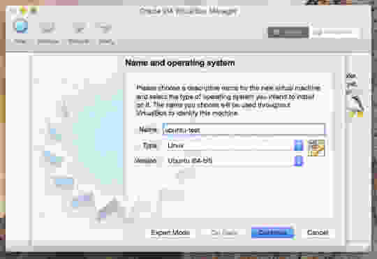 现在打开 VirtualBox 并单击“新建”以创建新 VM。下面是正在调用虚拟机“ubuntu-test”。