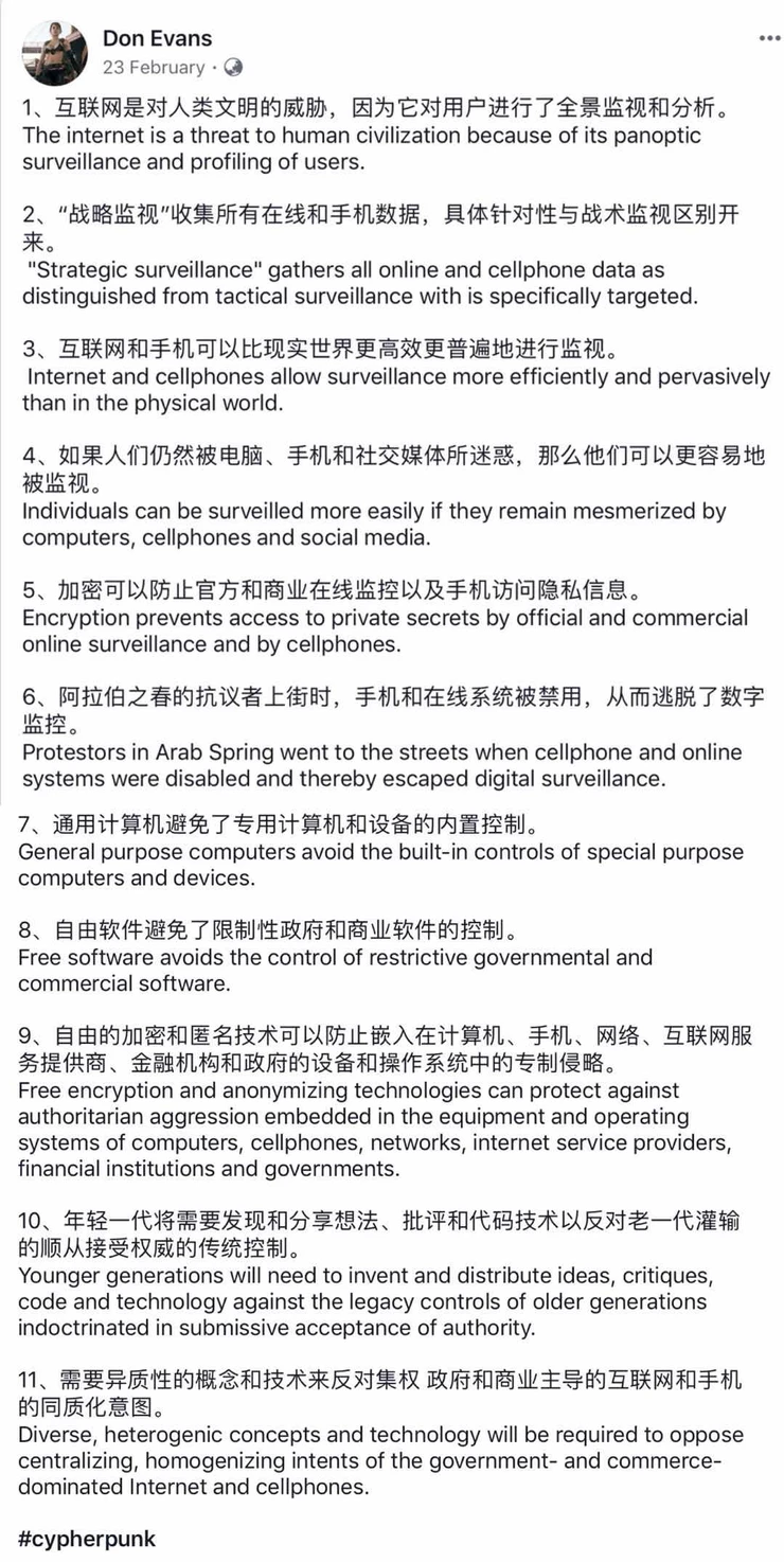 对于加密消息服务 Signal 来说,有着大部分相同的故事 - 它是由政府资助的,并且不像其粉丝所认为的那样绝对安全(互联网本来就没有绝对安全)。当然这些工具对于致力于保持匿名的高技术文化人员来说是很有用的,但“对于普通用户来说,这些工具提供了错误的安全感并提供了与隐私相反的功能”。(请注意,这里他指的是,美国政府可以做到全面监视,打破上述加密技术,几乎没有第二个政府可以做到这点,因为美国有霸占互联网的地利)